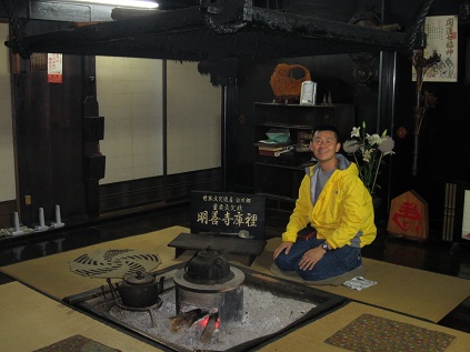 Relaxing at irori (fire place)