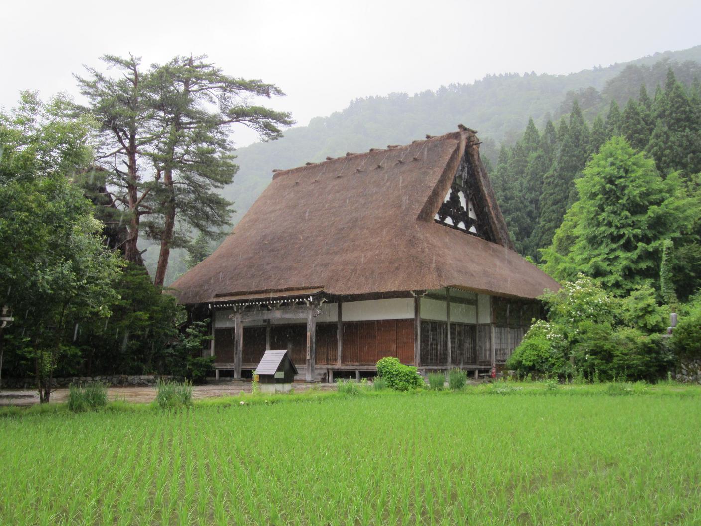 The last place I visited was a Myozen ji, a temple between 1:30pm to 1:50pm. I then walked toward the parking, crossed a rive via bridge. There was a museum near the parking to show relocated buildings from closed villages. Although the rain was getting hard, I entered the museum at 2:00pm and visited many houses for 30 minutes.