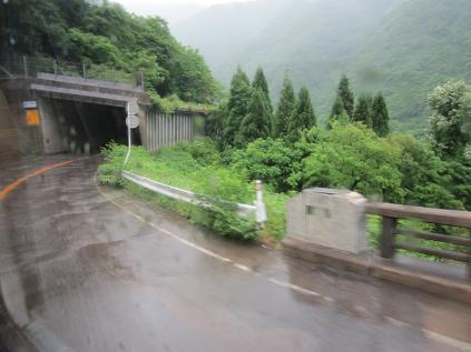 Hirugano Kogen SA at 10:49am, Entering Takayama city at 10:52am, Getting off highway at Shokawa IC at 10:55am. From here on, the bus took a local road. Kokudo 158, a.k.a. Shirakawa Kaido. The bus moved along a lake, passed Iwase bashi then to Iwase tunnel where the tunnel is too small for large vehicles, such as bus and truck to cross each other.