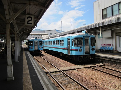 I pass the gate and went up to the platform. It was a little early so I was able to snap picture of Express Thunderbird, as well as buying snacks at a Kiosk before getting on the train. The train left Osaka station smoothly at 10:11am on time. The train had a better restroom than Shinkansen, I was able to get my cloth changed inside. Also called my dad to let him know that my interview was a success. After a while, I went back to the seat and watched outside and snacking for a while. The train moved in fresh green and alongside of river and mountains. The train get to Fukuchiyama station at 11:44am. Looked outside while waiting for the connection to Express Hashidate #3. The place was open but not much populated. The train left at 11:51am. The train began to move slowly. It has only single track so