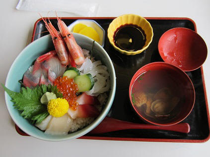 Ate kaisen don at 14:23 while filling out a couple of post cards to my dad and friend. After buying a few items at nearby gift shop,