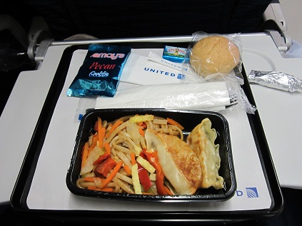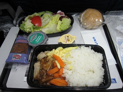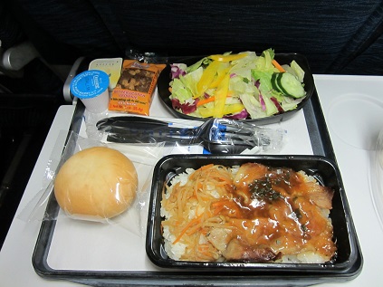 The lunch was surved and I got chicken one, the lights went down after that, so I went to sleep,