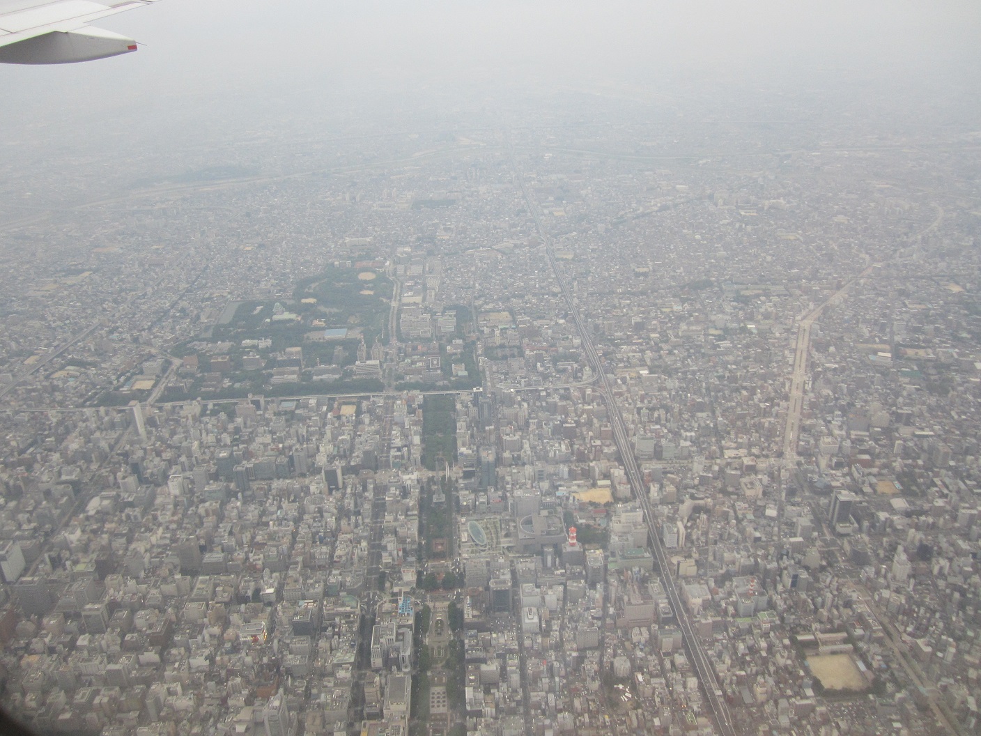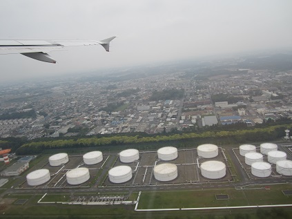The boarding process for flight to Nagoya began on time, so I cross the door and get on a bus at 4:37pm. The bus took passengers to the plane waiting on tarmac. On the way, I saw a small spider by my chair so I crushed it, just in case it came with me from the U.S. Getting on the plane at 4:50pm, and it departed at 5:00pm and began taxi toward the runway. Took off to south at 5:15pm to the southeast then turned to right while climbing. The plane took the regular path, flying over bay of Tokyo; south of Haneda airport, then the sky got cloudy and air got turbulent. I did not get to see much besides the Nippon Alps mountains. As it approach to Nagoya, the plane flew south of Ozone, City office area, Nagoya Station at 5:52pm then Nagashima Spa Land at 5:56pm before turning toward the airport for landing from north. The plane touched down at 6:00pm and taxied to Gate #2, pretty far from the baggage claim.