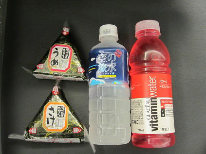 I walked out from the customs and gave my bag to an ANA agent. I was given a ticket already so I just confirmed my seat is at window side. I then walked upstairs to the security screening for the local flight. I had to line up and wait because there were about 20 people ahead of me. I pass the security then walked to the waiting lobby. While I was waiting there, I bought dinner; two riceballs (onigiri), and two drinks at 3:30pm.