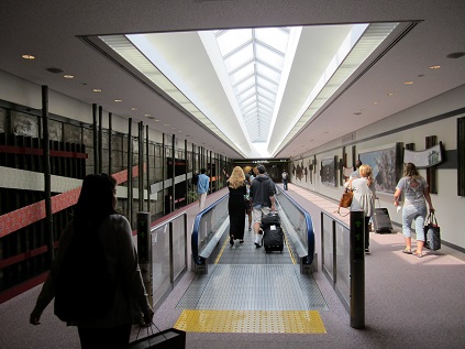 I got up at 5:30am, stretched my body. I was feeling well since I did not have to work second shift so I was well rested. Finished packing and took shower, then left home at 6:45am. The outside was already bright and I enjoyed easy drive to the airport since today is Saturday so there is no commuting traffic. I arrived at the parking by airport at 7:15am but had to wait about 5 minutes at the entrance since a person in front of me did not understand the instruction on where to park. Many cars lined up behind me, too. I finally parked my car, and get picked up by a van, which was filled with others to the point where driver has to go. I get dropped off at Terminal E at 7:30am, carried my bags into the building. There was a lot of people, more than I imagined. I immediately thought this is not good. To check in, I had to waited in a long line until 8:10am, finally get my ticket and bag checked in. For international flight, I could use premier access so the time I had to be in line for security screening was minimum. After collecting my belongings, I walked toward the gate. Stoppe by at a store to buy magazines for my friends.
