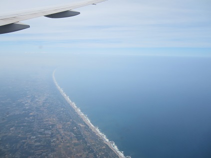 The plane flew along the shoreline toward north, then departed from the coast