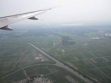 The plane flew south of Aleutian Islands, crossing the international date line, flew east of Hokkaido, getting closer to Japan's main island. The cabin lights came up, and Ate pasta for the breakfast. The plane apporached from the southeast and crossed the shore line, flying up to the north of the airport then turn to the final. I could see NEX along the way. The plane landed safely at 2:30pm JST. After the plane arrived to the gate, I got off from the plane and start walking toward the immigration and customs.