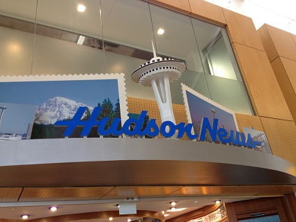 Bought water and postcards of Seattle at 10:30AM local