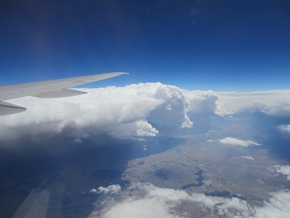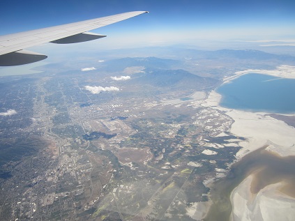 able to see Mt. St. Helen, the plane passed by Salt Lake City, UT, and saw stormy clouds in the middle of midwest.
