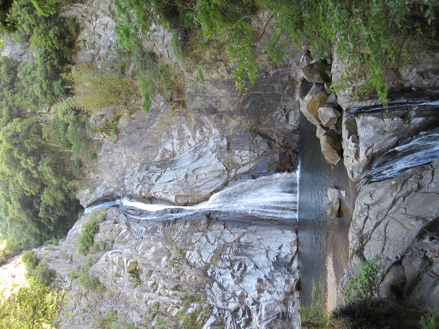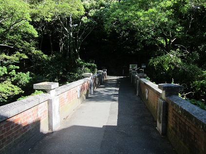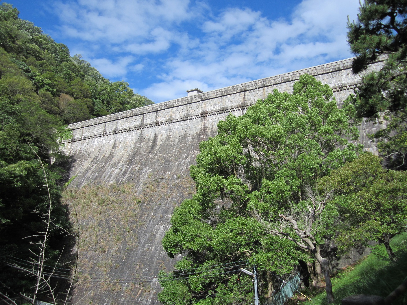The trail will first lead me to Nunobiki waterfall, I began to walk on hilly trail to the fall. The mountain looks all green and the blue sky made me feel good. I stopped by at the fall at 8:20AM, turned around and went up a series of steps leading to the observation deck nearby. After seeing the Kobe downtown area, I then began walking to Gohonmatsu dam at 8:30AM, and took a path by the Nunobiki reservoir.