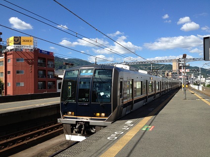 Getting on a local train at JR Rokko Michi station at 15:23 |