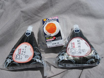 11:30am lunch at Memorial Park. I bought two rice balls and a boil egg in the morning.