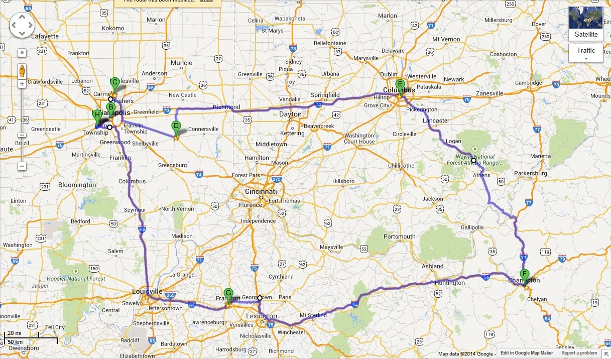 the air. Kept going to east and arrived at Columbus. Somehow the power to my GPS