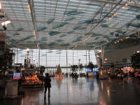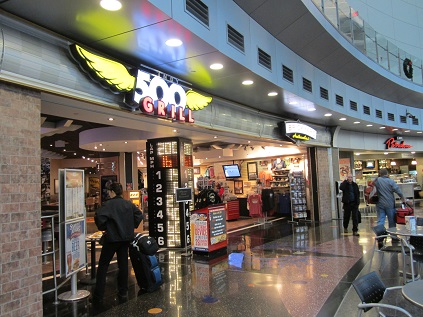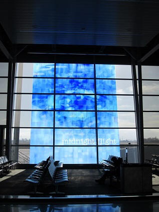 As soon as I grabbed my bag, I walked toward the exit. This is a new terminal and I do not recall the old one. After passing the exit, I walked in to an area with many things hanging from the ceiling. I walked toward Ground Transportation, and checked in with a rental car company. The agent knows a guy with the same first name as mine, and also knows Takuma Sato, an Indy car racer. Wow...