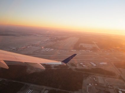 I got on the plane at 5:25pm at the first class cabin, continued working on my blog. The door was shut at 5:44pm, being told that I can continue using electronics devices, so I just helped myself. The plane was pushed back at 5:50pm but before the plane head out, it had to be coated with deicing liquid. The plane restarted the engine at 6:00pm and began to taxi, took off at 6:15pm and started the flight back to Houston. They sky at west still had orange light but the area becoming narrower and narrower. Because I was upgraded to the first class, I got snack pack in flight. It was nice. After the sky gets completely dark, I get to see the lights on the ground but mostly covered by clouds. When I get bored typing, I shut my eyes to get some rest. The initial descent began at 7:05pm CST, flew over the lights on the ground and landed at IAH at 7:40pm.