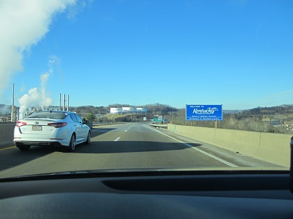 Left the location at 8:00am, stopped by pharmacy for postcards but they did not carry one. So I gave up and began driving. The route had a lot of ups and downs because of the mountain area. Some parts the road looked wet or frozen so I did not drive up to the speed limit at certain portions. Tried a couple of gas stations for the cards and I got lucky with the second place. Crossing into Kentucky at 10:20am, the first thing I saw was a big plant by the Big Sandy River.
