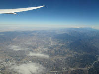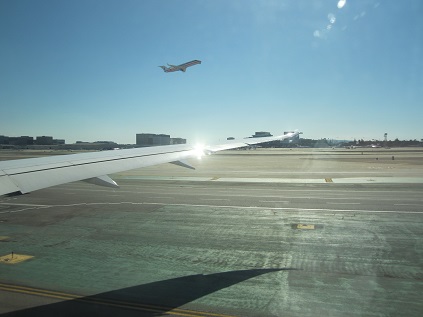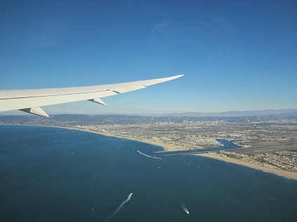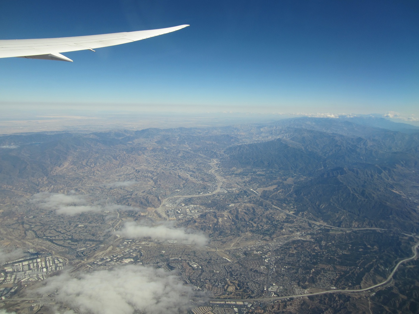 Soon the boarding started at 6:30am, and I took a seat at 6:35am since I was in group 2. Patiently waiting to finish the boarding process. The sun comes up by 7:00am, and the plane began to push back at 7:30am. The plane taxied to a runway and took off to the south. The plane climbing into low clouds while heading to west. Soon the plane broke off from the layer of high clouds and I get to see the sun. Took a nap since I felt finally relieved after finishing up the work for the last 6 months, and safely drove to the airport. Next time when I got up, the plane was flying over Arizona. The plane began to make approach to LAX from the east, seeing Los Angeles downtown to the right then landed. After the landing, the plane had to wait for 5 minutes off runway since there was a plane departing from another runway located between the terminal and where we were. Began taxing at 9:00am and arrived at the gate. Getting off from the plane at 9:20am.