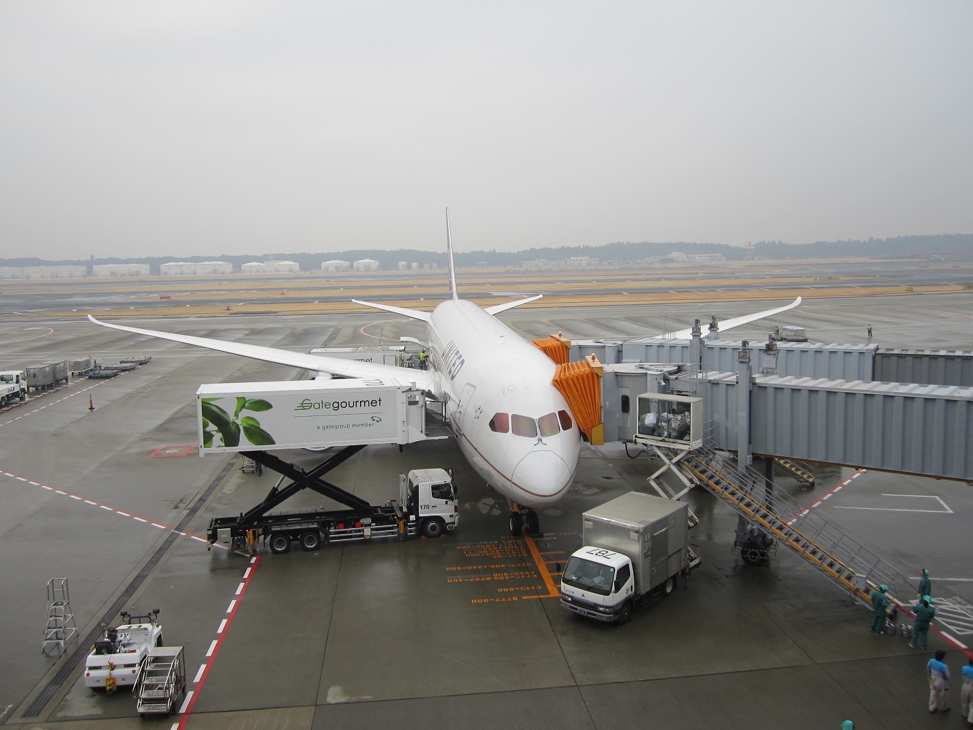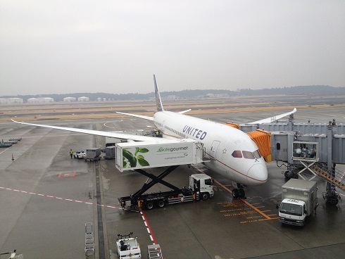 I have to change the gate for connection so I walked to the gate 76 at 9:30am. Under the sunny California weather, I spent quiet time at the lobby while resisting sleepy feeling. The boarding began on time and I again get on the plane with group 2 priority and took a seat at 10:30am. This is my first time in B787 Dreamliner, the roomy cabin with new look was pretty cool and also the window using polarized blind. They were even giving people a souvenir which a deck of playing card. The departure was supposed to be at 11:05am, but was delayed due to a computer issue. The door finally closed at 11:30am, then pushed back 5 minutes later. During the pre-flight, CA announced that were are allowed to use portable electronics for entire duration of flight, adding that once landed in Narita, it is not allowed. Just made me laugh a bit...