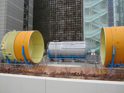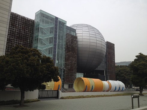 For the afternoon, I left home at 12:15pm and get on a bus to a train station, switched to a subway train which left at 12:42pm. After arriving to Sakae, I stopped by a bank to withdraw cash to allow me to stay in Japan without being cash strapped, then began walking toward Nagoya City Science Museum at Shirakawa Park under cloudy sky. I used to go there many times when I was a junior high school student. Since today is Monday, the place is closed but I was able to check out some of the exhibits placed at outside; old light rail car, locomotive, an engineering model of ISS's Kibo unit.
