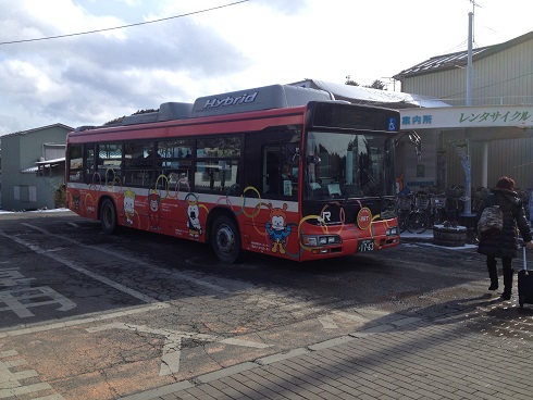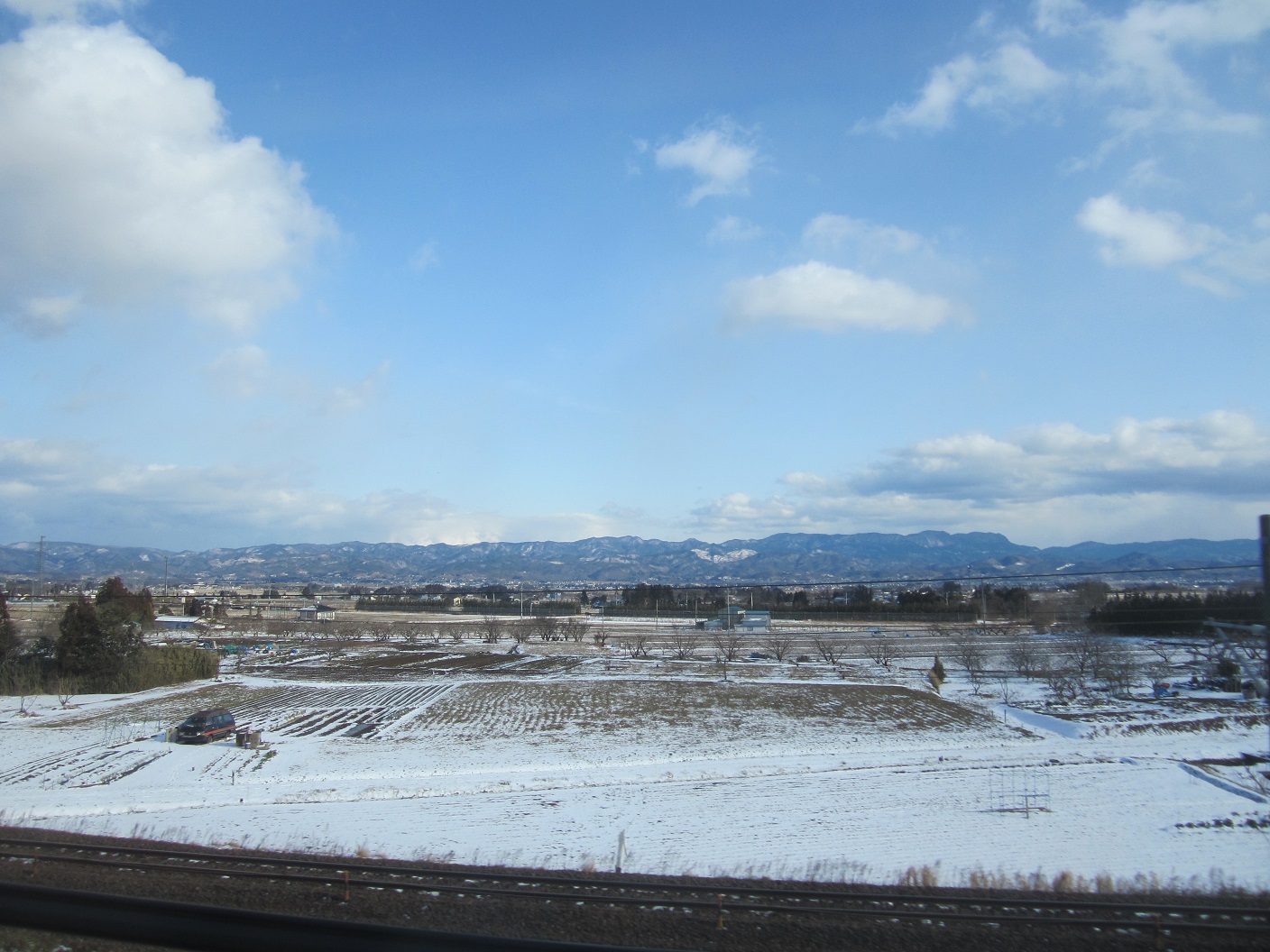 At Tokyo station, I changed the platform to Tohoku Shinkansen Line. They have several different looking ones so I enjoyed watching it. I bought my lunch before getting on the train. The Yamabiko 55, left Tokyo station at 9:40am, made several stops on the way. The sky was clear until passing Kurikoma Kogen station then snow started. Arriving to Ichinoseki at 12:14pm.