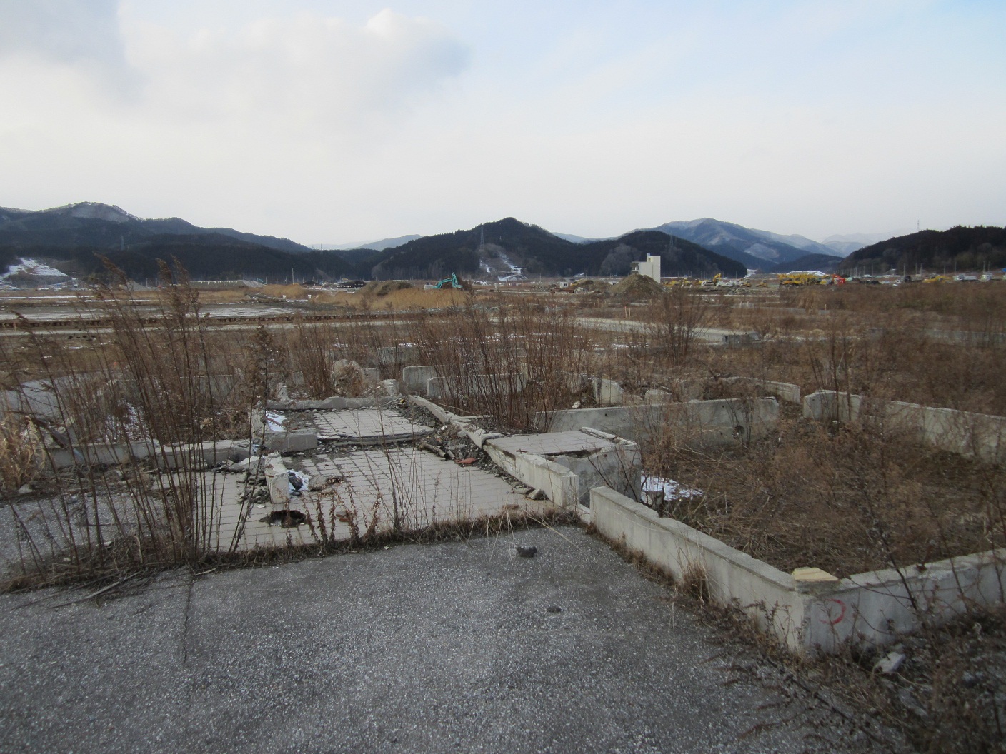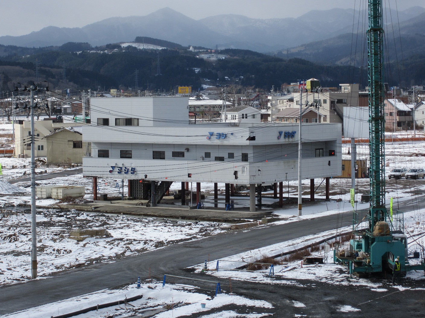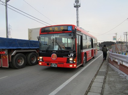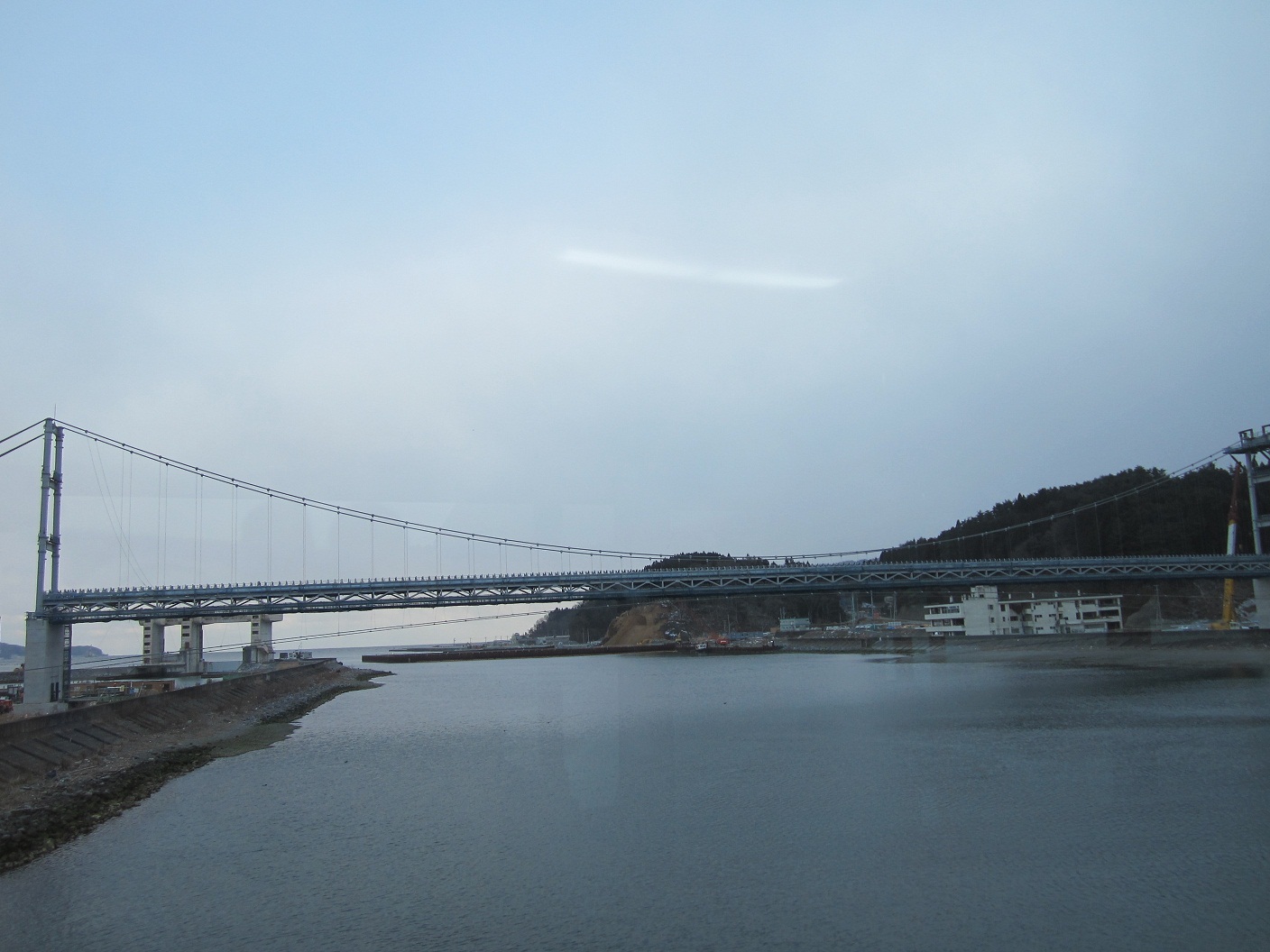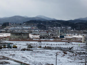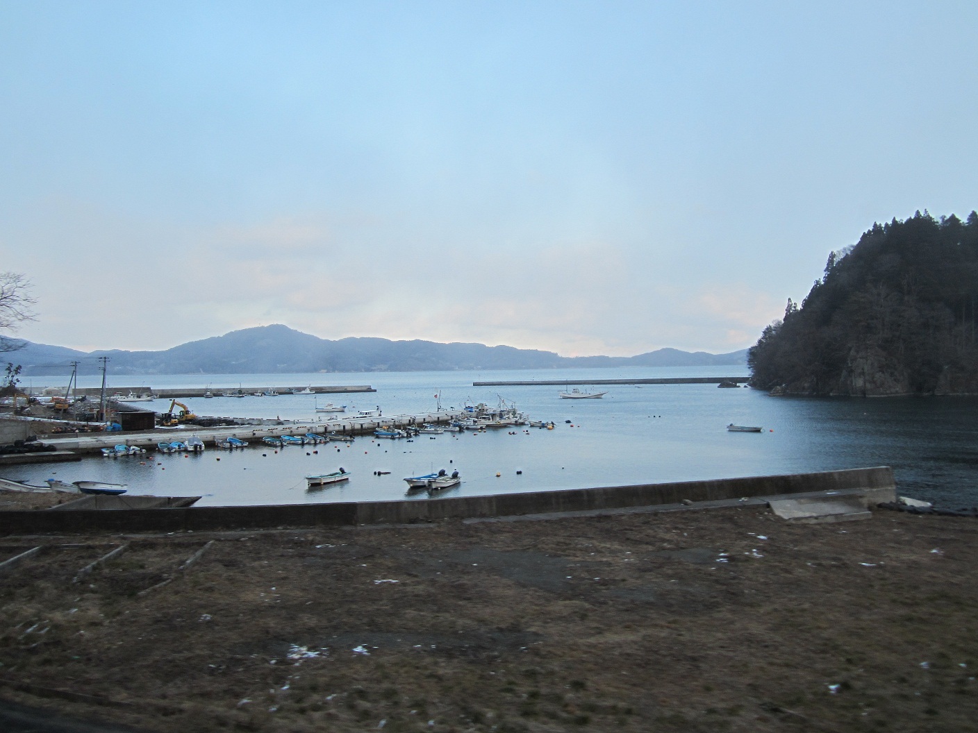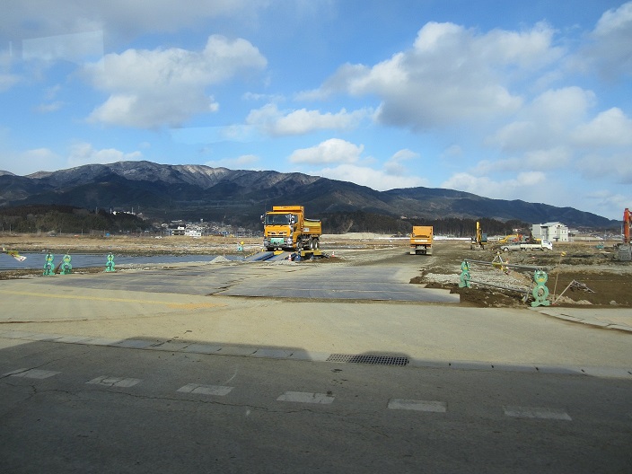 I had about 10 minutes before getting a bus leaving Kesennuma station. Because of the Tsunami, the rail track was destroyed from here and bus service was needed to substitute. The but moved in major road toward Rikuzentakada. I could see a lot of construction machines and dump trucks for the reconstruction, as well as the open spaces with some debris or foundation of the houses stood left, they were the damage done by tsunami,