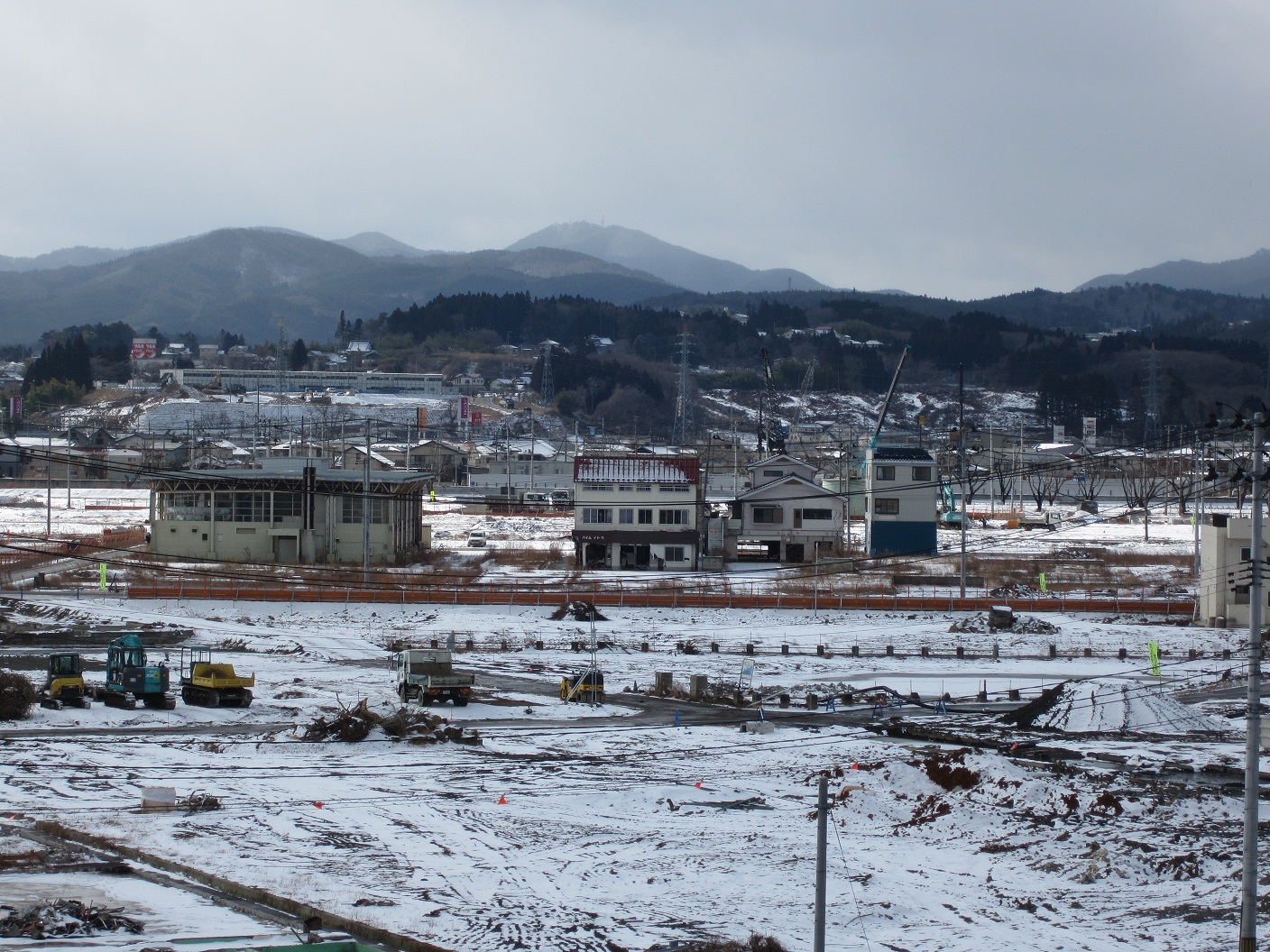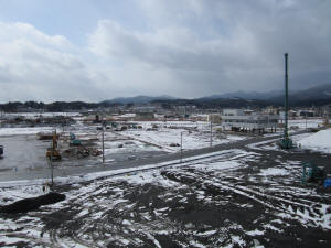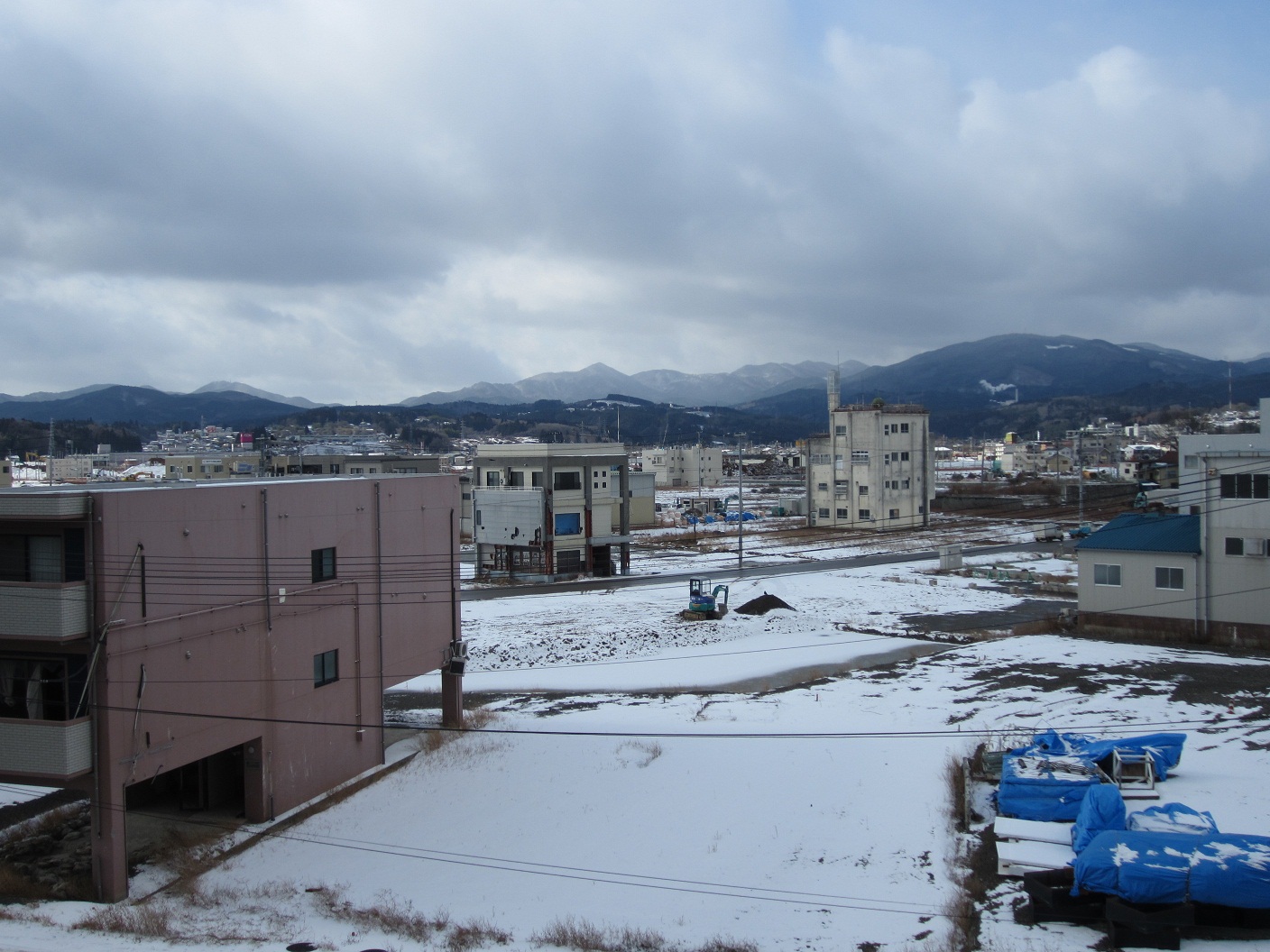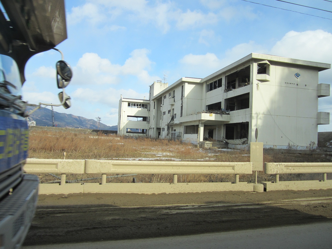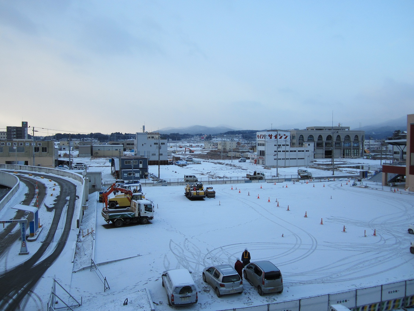 I had about 10 minutes before getting a bus leaving Kesennuma station. Because of the Tsunami, the rail track was destroyed from here and bus service was needed to substitute. The but moved in major road toward Rikuzentakada. I could see a lot of construction machines and dump trucks for the reconstruction, as well as the open spaces with some debris or foundation of the houses stood left, they were the damage done by tsunami,