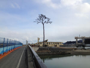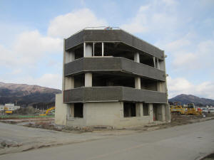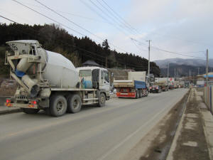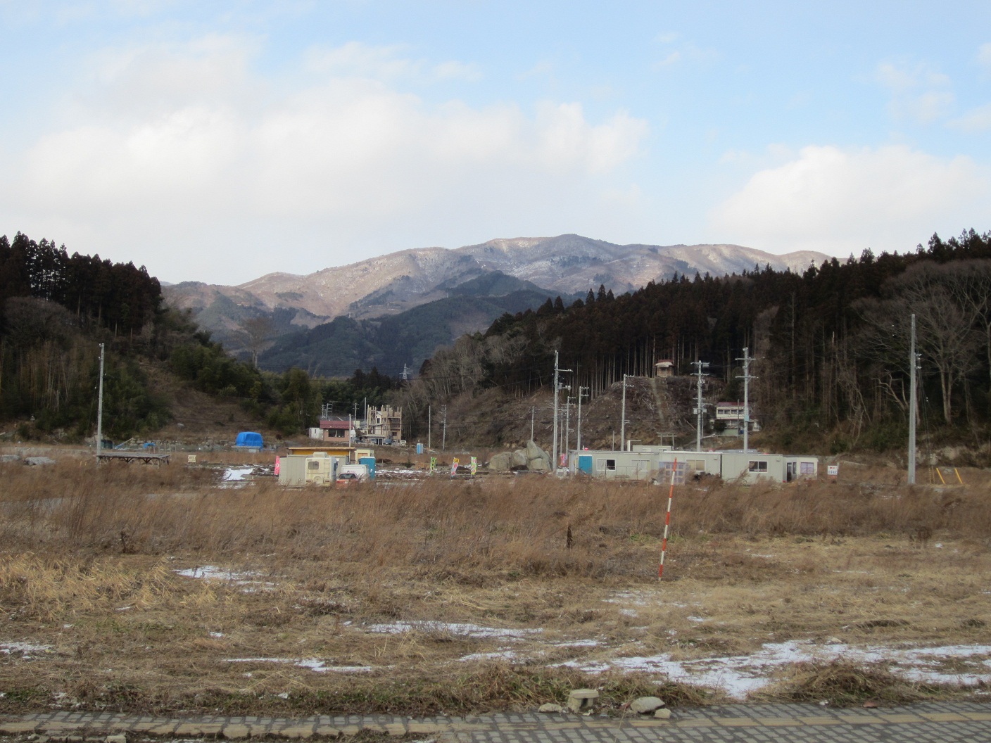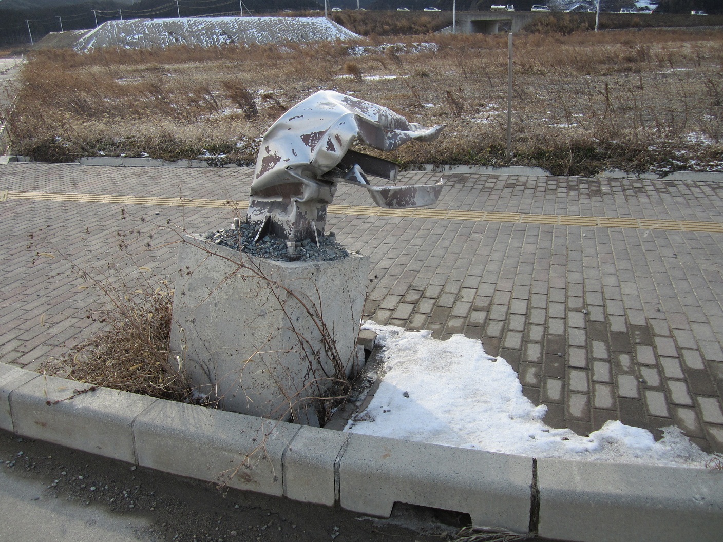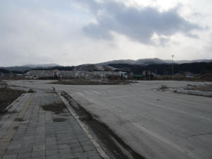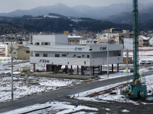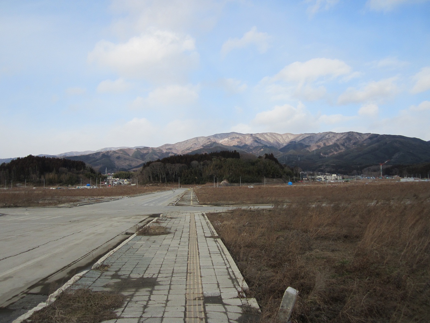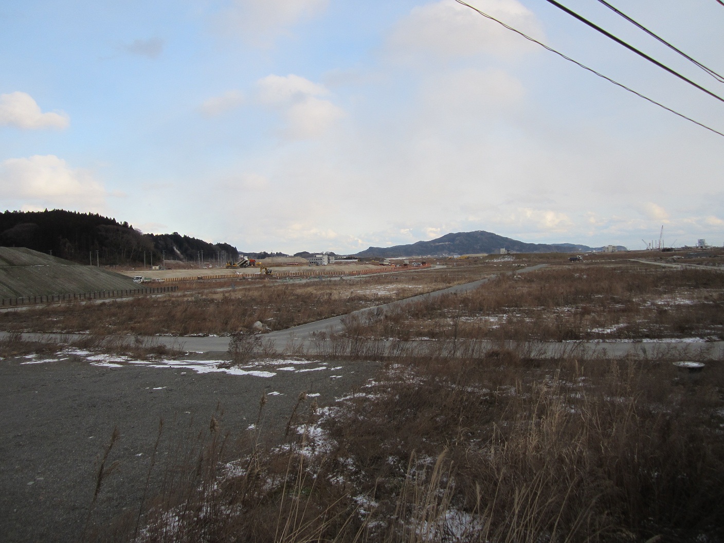 I had about 10 minutes before getting a bus leaving Kesennuma station. Because of the Tsunami, the rail track was destroyed from here and bus service was needed to substitute. The but moved in major road toward Rikuzentakada. I could see a lot of construction machines and dump trucks for the reconstruction, as well as the open spaces with some debris or foundation of the houses stood left, they were the damage done by tsunami,