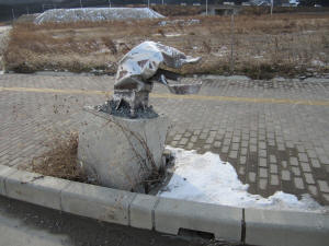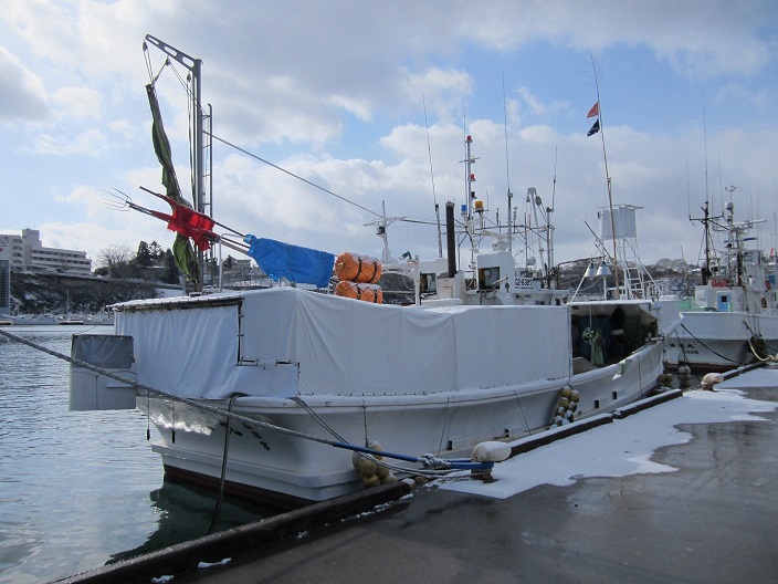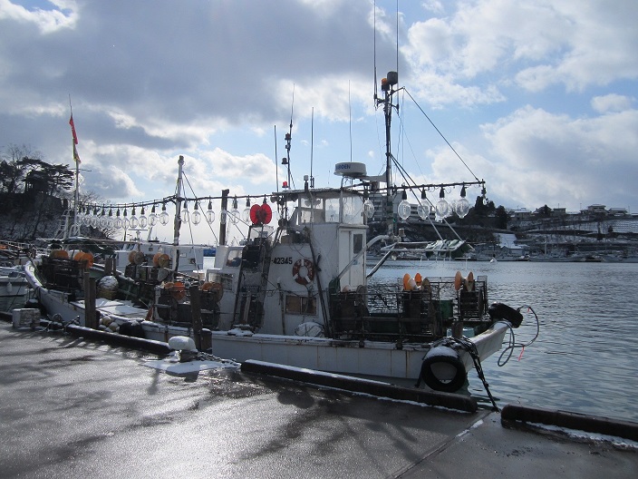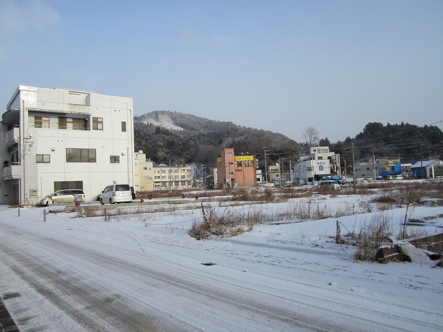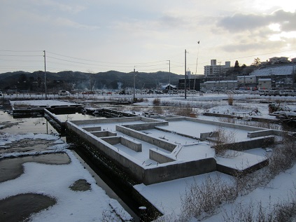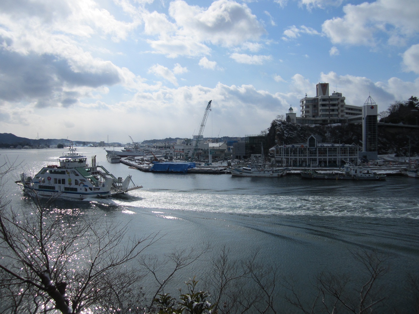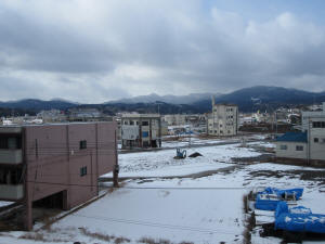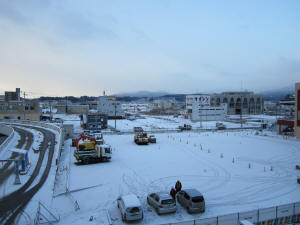 Walking around the port area, and saw a shrine, so I decided to walk up there using snow covered stairs. Watched the scenery of the port from high above, watching a ferry leaving the port around 10:00am. Walking by the fish market and then to a hill nearby around 10:30am. I can see the area is pretty much wiped out and some remaining buildings are either being demolished or missing the first floor.