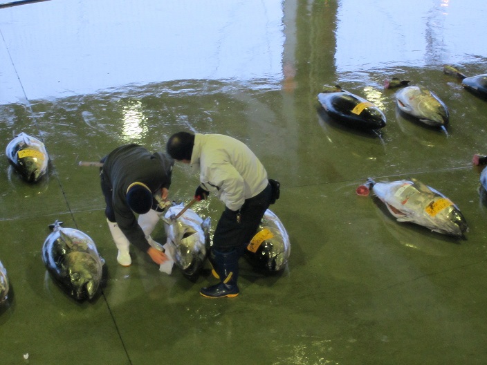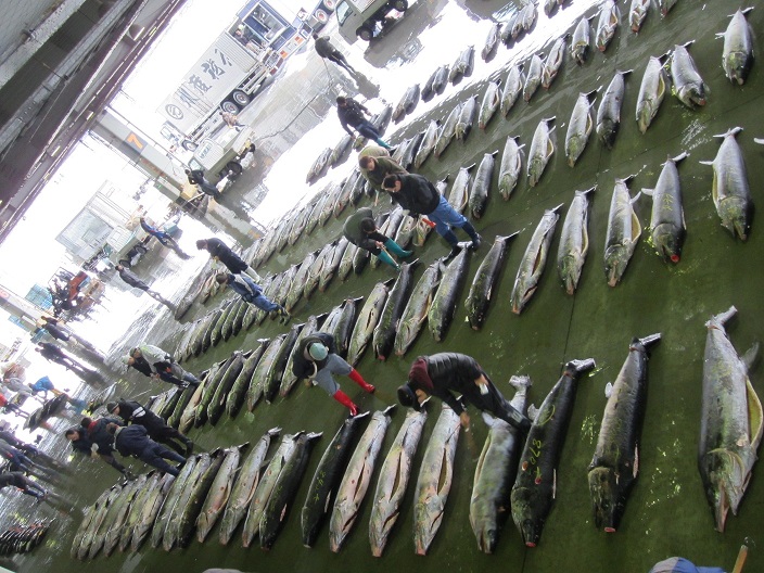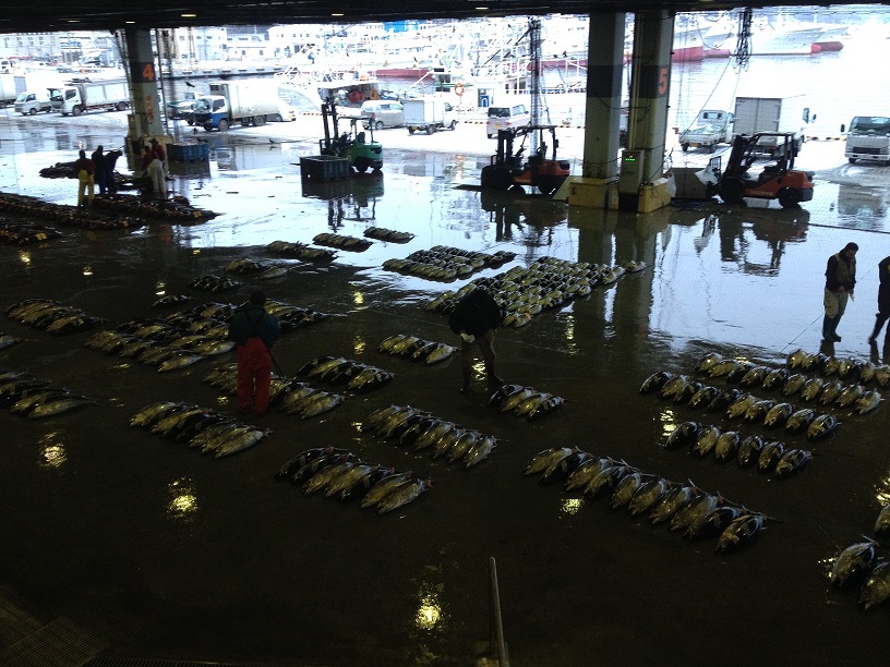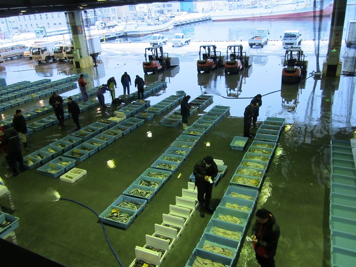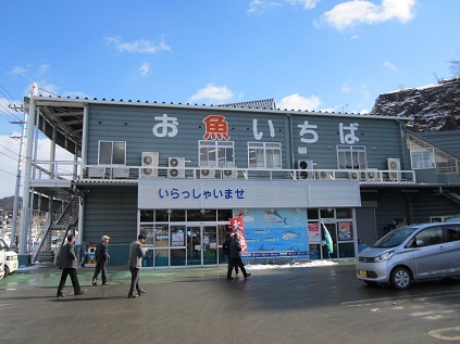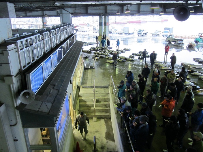 Left hotel at 9:30am, dropped off my large backpack at a locker at the train station then began walking back to the fish market. Now most of the snow is gone from the road. Something good about this part of country, is people passing by greets. While I was walking on the road, I greeted with many local people who I do not even know. At the city hall, saw a line drawn on a column with indication of tide level around adult's chest. I checked on the Google earth and saw the elevation is 40ft, so the water actually came in that high from the sea level. at 9:45