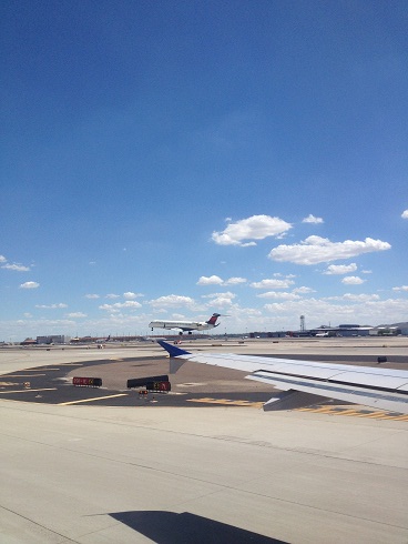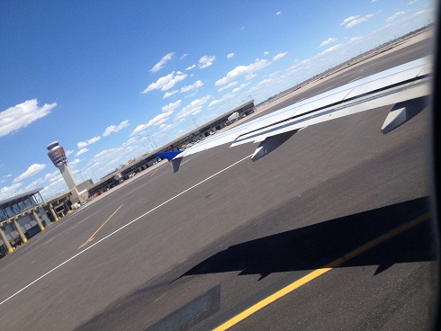 Left the by 11:50pm and drove toward the airport to return the car. Found a gas station near the airport and Returned to the center at 12:30pm. Took a van back to the airport. Checked in at the counter then began heading to the security. Unlike Houston, the security was less crowded and did not have to wait too long. When I arrived to the gate at 12:50pm, the boarding has already been started. I met a lady with Google glass who is sitting in front of me. I am not following but she wore everything fancy; clothings, nails, and her travel case.