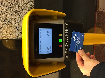 Woke up at 6:00am, stretched my body and get showered. I was tired from long drive yesterday. The hotel check out time is at noon, meaning that as long as I come back here by noon, I can keep my bag. Stepped out and walked to the lightrail station. Bought a ORCA card at 8:00am, $25.00, with $5.00 fee. Get on a train at the airport station at 8:10am. The train was very smooth ride. It started from elevated then moved along street then going under the street level. Getting off at University Street station. The station was designed so a regular bus can also share the same platform. While there is no train, buses comes in and make unloading and loading.