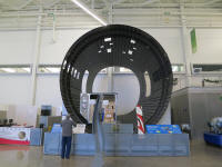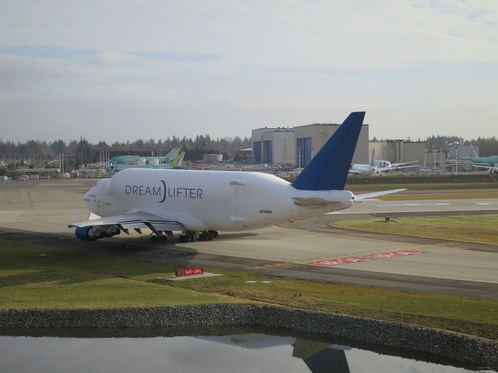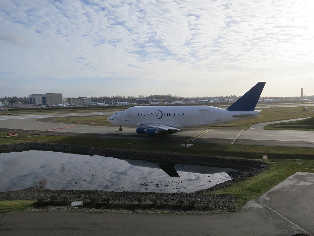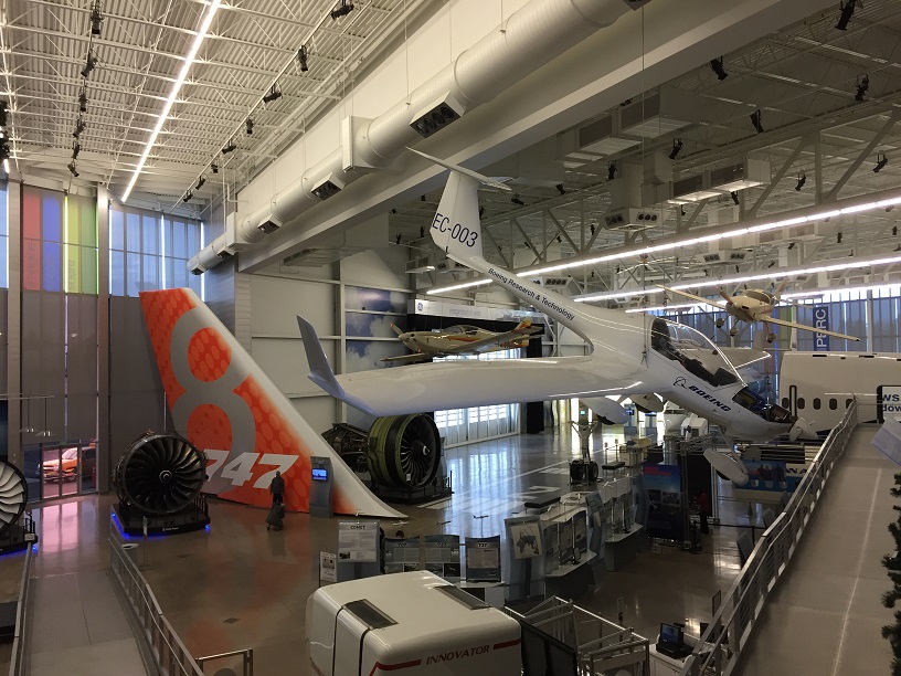Paid $18 for a ticket, another $1 to use a small lock box then I took a tour from 9:00am. There were about 30 people in the tour, begining with on board and a bus took us to B747 line first. From the observation view, right hand side had several bays of nose section assembly, and other side had a final assembly, starting from wingbox, with fuselage and wings attached, finally with gears, then engine before leaving the plant. The buidling has about 40 soccer field, with underground tunnel networks. After a short bus ride, I was at B787 and B777.