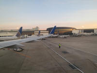 I arrived at gate E8 at 6:05am, in here also, there weren't many people so it was easy to find a bench with no one else. The boarding started on time, and I get on the plane at 6:50am, waited for the boarding to complete as the outside is getting brighter. The plane was pushed back from the gate at 7:15am, then began taxing. It took off to the south and turned right to change heading toward LAX. I was able to sleep time to time because the air was smooth. I woke up as the plane flew over Phoenix, AZ and soon the plane began preparing for the landing. The plane approached from east as usual, looking at the downtown Los Angeles syscrapers to the north and landed at 8:37am PST. The plane taxied to the gate for 5 minutes. I got out at 8:50am.