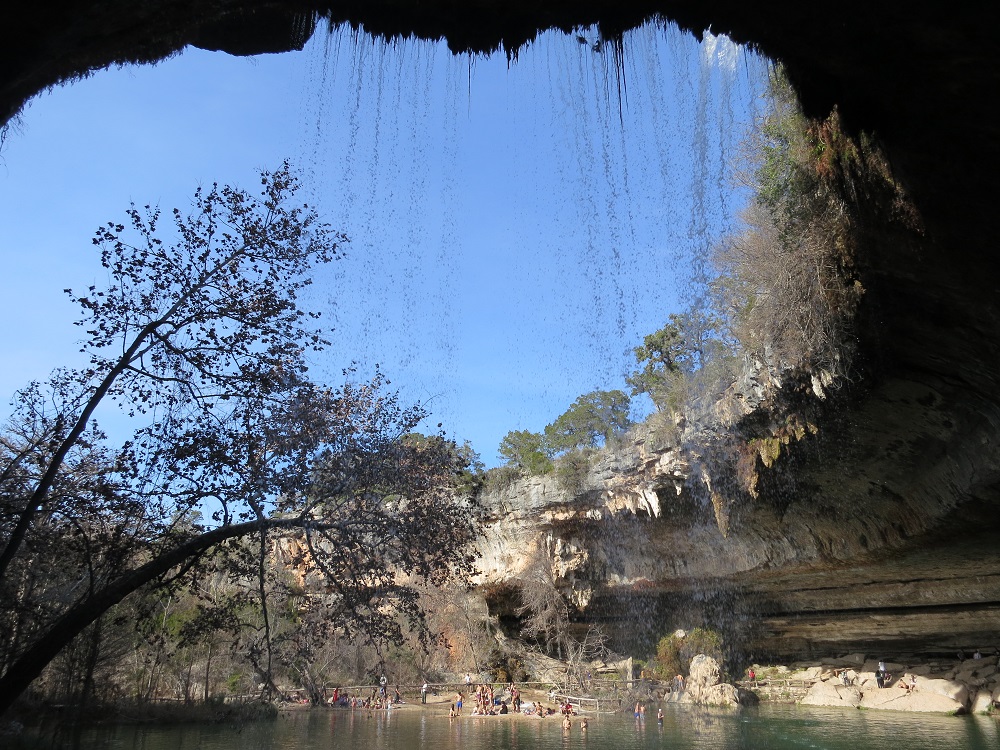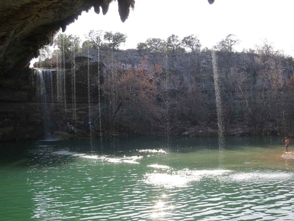 I then left Austin to stop by at Hamilton Pool Preserve. The driving part was easy but a lot hilly regions compare to Houston, and the road was winding. When I get there at 2:40pm, there was so many cars lined up for parking. I was told there will be 1 hour wait and need to pay $15 in cash. I rolled down the windows and let fresh air in while enjoying the sun and breeze. I had to keep the engine running even though the cars are moving not often. I wished I had a Prius. Finally get to park my car, walked down a steep trail and get to the pool. The water was supposed to be cold but there were many people bathing and actually going under the falling water. I enjoyed the view of the creation of nature then walked back to the parking after snapping a few photos. I hope to be there when not many people are around. I left the place then began driving back to Austin.
