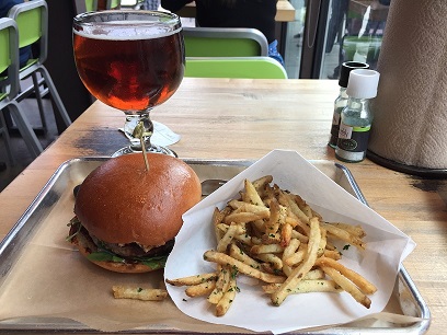 As I walk back to the parking after the race, the rain began falling. Drove back to the hotel at 9:00am and took shower. I left the hotel at 10:15am and went to SOCO area. Parked my car. There was a hamburger place, called Hop Doddy, I missed yesterday. There has been already some people waiting at the outside. We were allowed in 5 minutes before 11:00am. Lined up for ordering, and I got Primetime, fried potato and Thirsty Goat Amber beer. It was a nice cerebration.