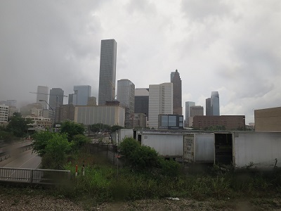 The bus departed at 12:40pm after neighbor check. People get quiet after this, and the ride was going smooth. Crossing into Texas at 1:55pm and the rain started. By the time passing Beaumont at 2:15pm, the sky was back in cloudy but I know there is a storm system in front. Rain came around 3:00p south of Mont Belvieu but when entering Houston city limit, the rain was over. The bus took I-610, passing by port of Houston and moved up I-45 north before getting off at downtown. The bus arrived at the parking at 3:50pm, getting off and walked to a nearby bus stop to wait for the one for line 053.