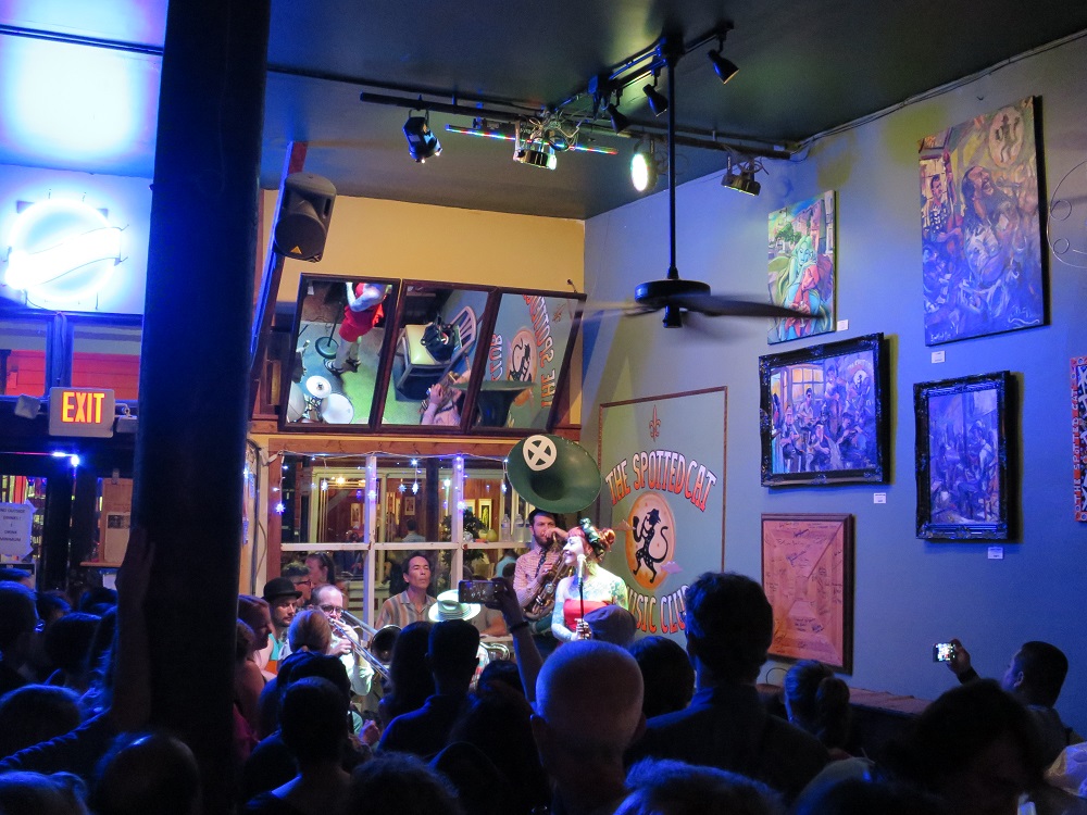 pictures of New Orleans jazz players like Louis Armstrong, and Fats Domino.
