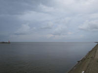 Getting out from the building, then walked up to French Market station of street car, the driver was taking a break and chat with two other persons from Wisconsin and Chicago. Took a train to canal st station then walked up to the gate for the ferry. I paid $2 and get on board a ship. Saw a girl I saw at one of the train stops in the morning. Must be an another tourist. The ferry went to the other side of the river in 10 minutes, I had a 5 minutes to go take a picture before the ferry head back to the New Orleans side. Another $2 to get onboard, back at 2:25pm.
