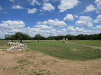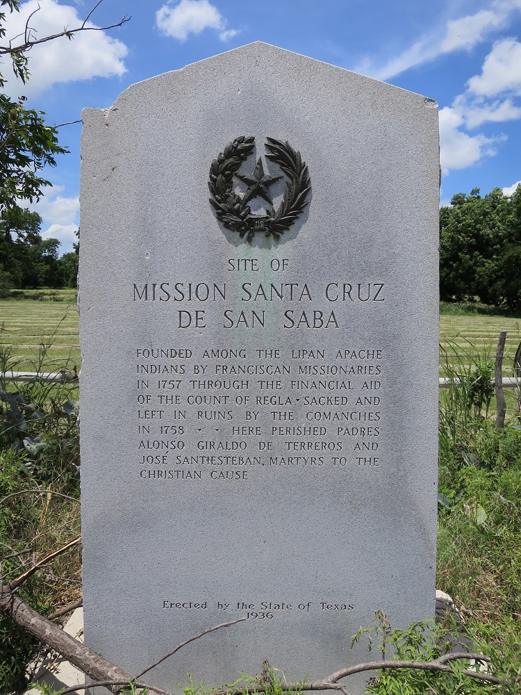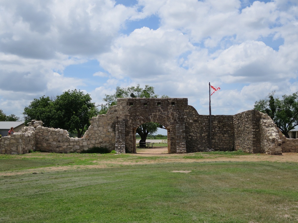 The town looked pretty old, but first I took FM 2092 to east to check out the old mission. There was a marker describing how the farmland today was a place where Spanish people build a mission and then attached and burned. I drove back to the town and stopped by at the old train depot, then left to check out Presidio San Saba. I took US-190 to west for 5 minutes and in the middle of the open field, I saw the fort. I made a stop and walked around.
