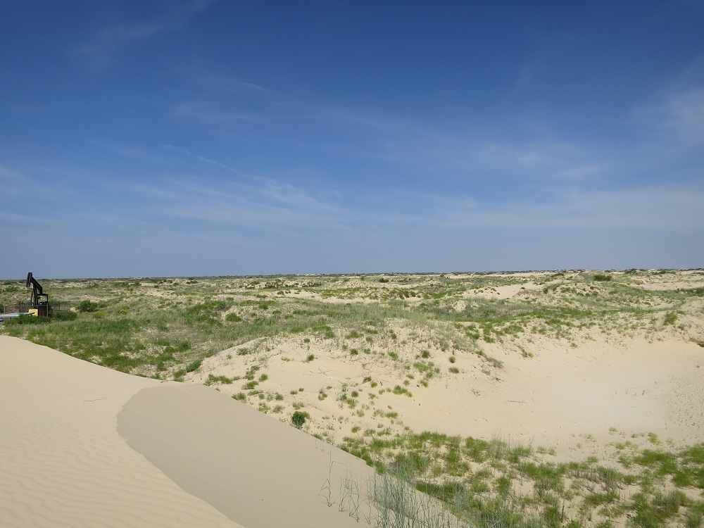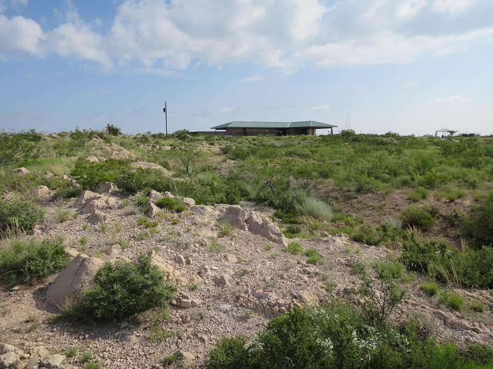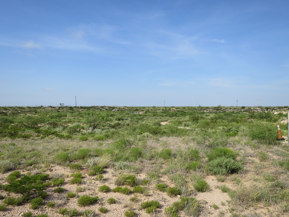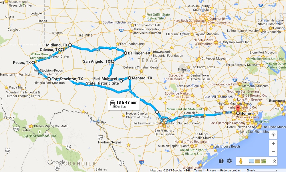 The first place I drove was Texas A&M University to check out Bush Sr. house and replica of Stonehenge. Light green colored small house was telling me that the person who became a president was also once a passionate salesman. I then drove to downtown Odessa to check out Jackrabbit before taking I-20 business road to Midland to check out Bush Jr.’s childhood home. This was another small house with small backyard. I bet for both presidents, the White House must be a pretty big place to live. I left there around 9:10am, drove on I-20 to check out Odessa Meteor site. I followed the sign and got off from the freeway, and drove several miles in nothing except dry land in sight. The place was open so I parked my car and walked around to take pictures. I was hoping to find more crater like but it was nearly a flat plain. Getting back in the car, set the new destination to Pecos.