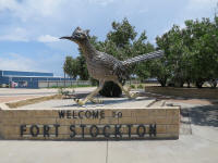 US-288 south, the road to Fort Stockton was very flat and straight. I got showered for a bit, and the car was also pelted by the trucks with loose sand coming from the other side, maybe for fracking. The entire route was very smooth, no traffic jam and not too sunny or cloudy, soon I arrived at the city limit. After 1:00pm.