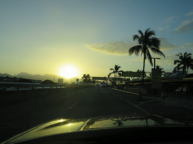 Left the hotel and drove on the local road toward the freeway then drove toward the Airport. After arriving at the airport, I had to drive a bit to locate the rental car return. Driving against the sunlight was not my best experience. (done)