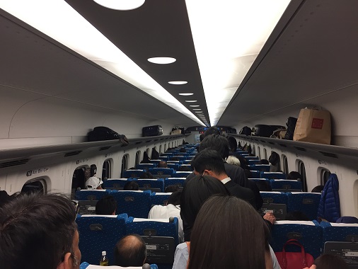 After bidding a farewell with my friends, I walked up to the platform of Gotanda and took a local train leaving at 21:57, which made it to Shinagawa station very close to the last Shinkansen train to Nagoya. I then run to a locker and took out my bags, dragged them to the platform of Shinkansen. I did not have time at the gate so I just showed my ticket to get on the last train to Nagoya, Hikari 539 left Shinagawa at 22:07, which was packed and I was standing at the isle of a non-reserved car. I was able to take a seat after the train stopping at Shizuoka at 22:56, where many people got off. The train arrived at Nagoya at 23:49.