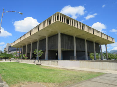 I had to wait for a while to get a ride back to the parking. By the time when I arrived there, the amount of people has dramatically increased compared to the morning. It's no use to stay any long, so I started the car and left the place. I wanted to stop by at the center part of Hawaii to check out the state capital and others so I found a place to park and made a stop at downtown to check out the