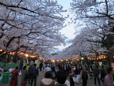 Getting off at Ueno station and took a walk at Ueno Park. Under the twilight, I saw a lot of people gathered, some are for company functions. The Sakura, chrryblossum tress are in near full blooming so