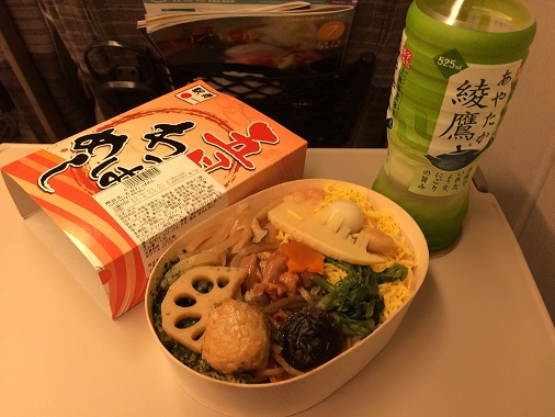The car was packed with a group of folks looks like going on a company trip. As the train move through Tokyo area, the cloudy weather continued but the sky was getting cleared as the train making a stop at Utsunomiya at 9:40am. I got hungry so I dag into my early lunch. (done)