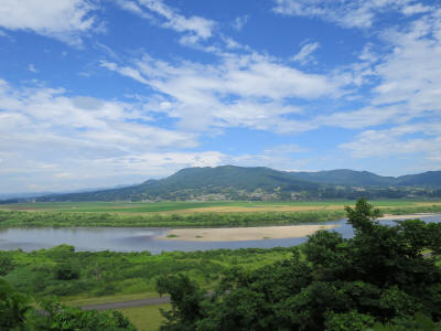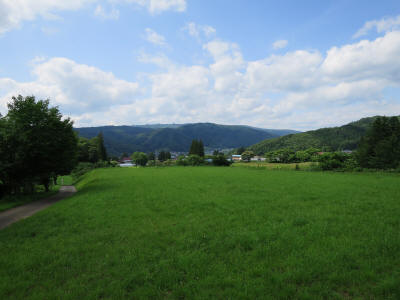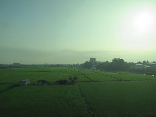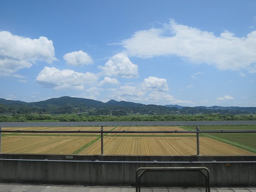 I picked up a rental cycle for 620 Yen (3 hours) at tourist information center at the station and left. I am not used to the kind of bicycle, and riding without a helmet, it's a bit uncomfortable. Took a road toward nearby intersetion to the north, within 20 minutes or so, I was riding bike in a countryside where open field to my both left and right under sunny sky, where I can only see rice fields and it was just so nice.