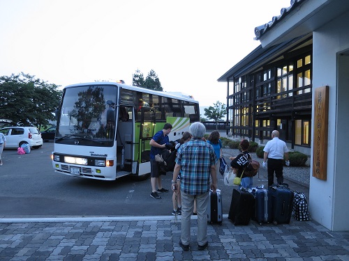 7/3 Hiraizumi Woke up at 5:00am Had breakfast at ? Caught train leaving Tono station, they were selling Came back to Tono Made first trip to spa Went back to station again Picked up the second group Took the first group In the evening The last was the storytelling by local elderly in the club They had BBQ party