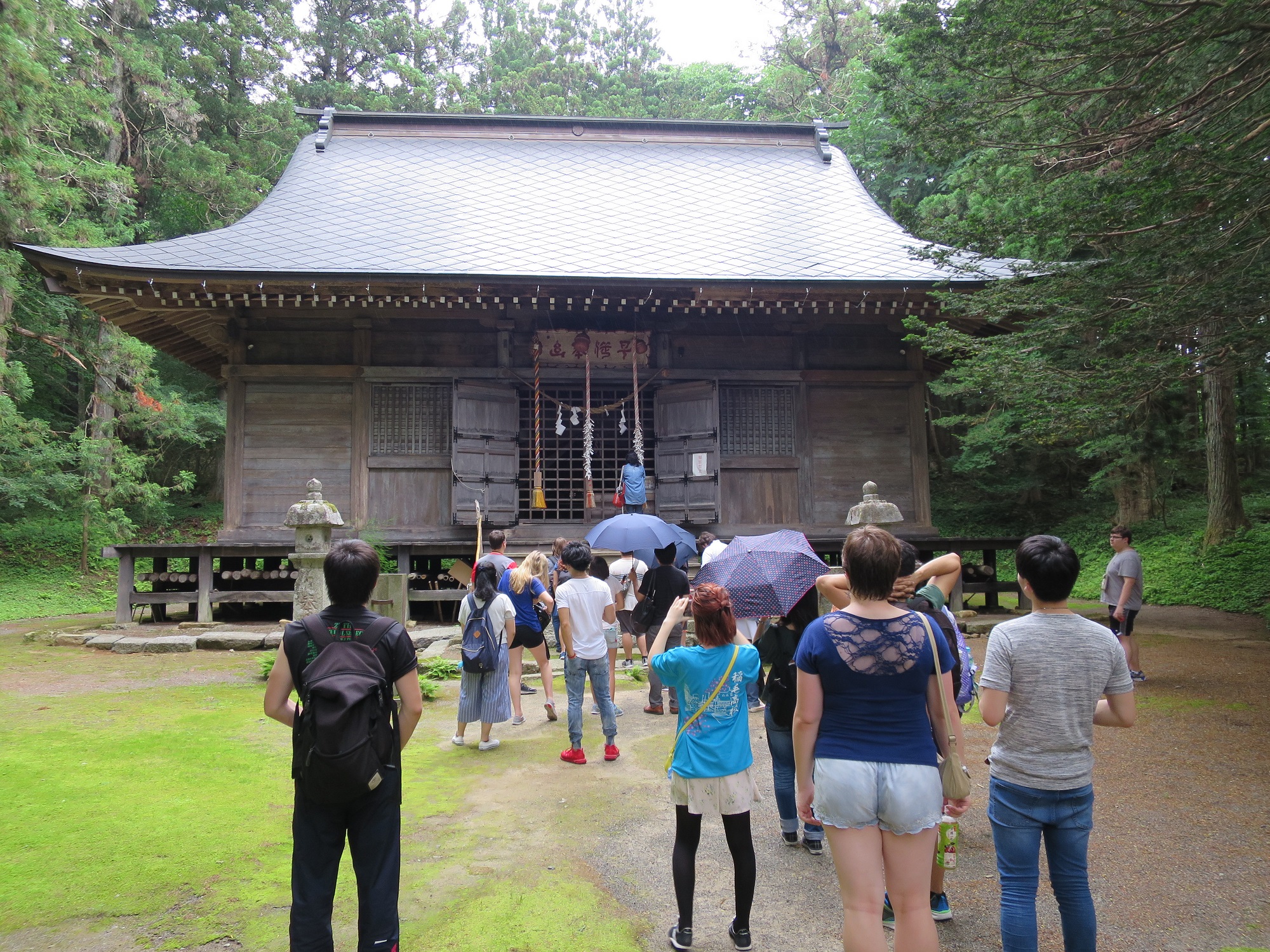 We took a break by a bridge for quick lunch, students get to play in a river. Soon we proceeded to Hayachine shrine