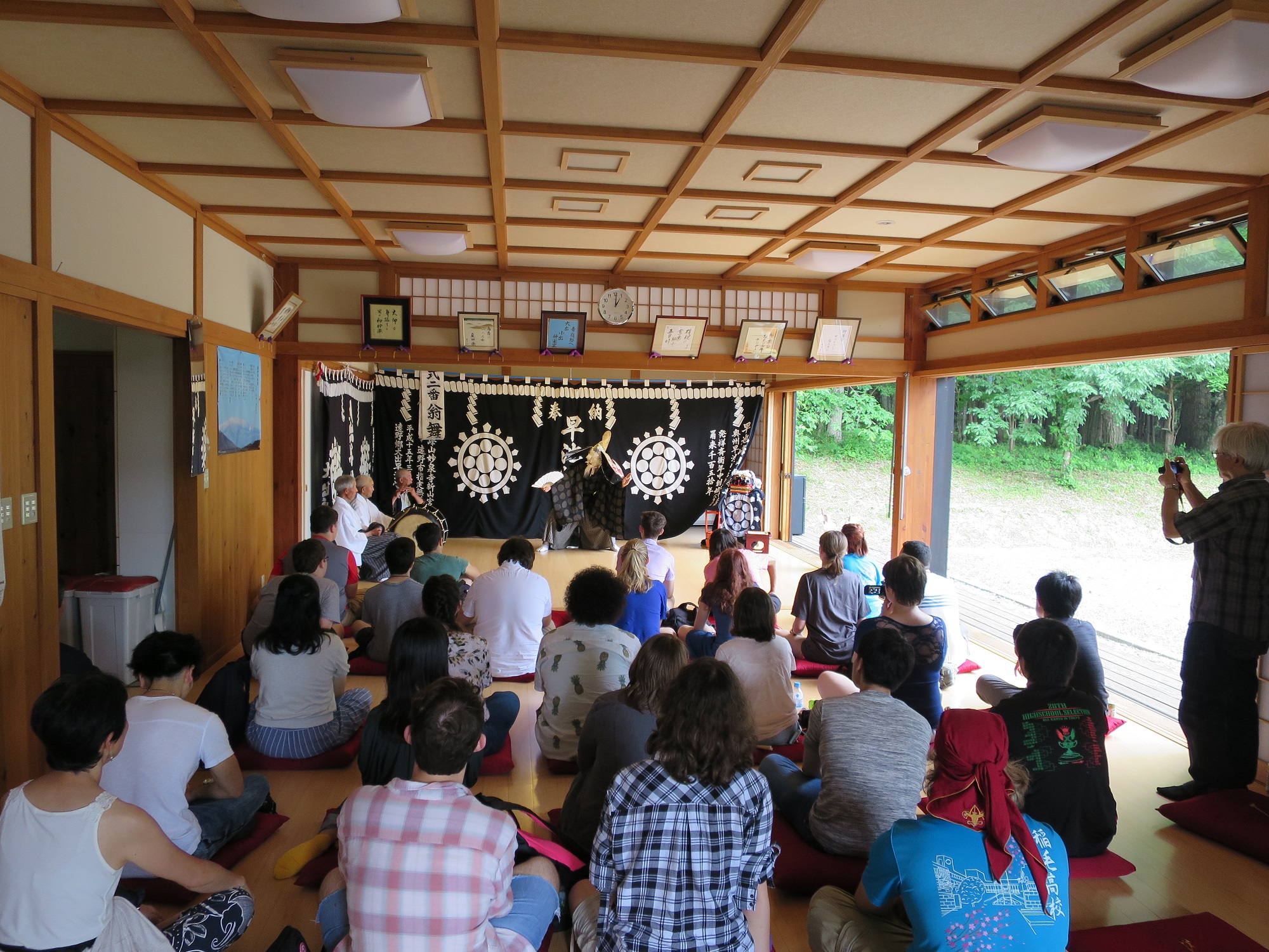 After arriving back at Tono station, I picked up a group of students to a spa then returned to the station again to pick up one more group. So total of 14 people I took them there. I returned to the college with them, had dinner (Cupped Fried Noodles) then the storytelling session has started. It was an event involving the locals and American high school students reading the stories in both English and Japanese. The last part was by the local storytelling elder. The whole thing ended around 9:00pm